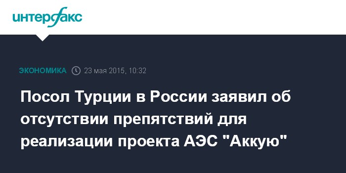 Москва. 23 мая. INTERFAX.RU - Анкара рассчитывает реализовать совместный с Россией проект по строительству АЭС "Аккую" в ближайшее время, а также продолжить сотрудничество для строительства новых атомных электростанций, заявил посол Турции в Москве Умит Ярдым в интервью агентству "Интерфакс".