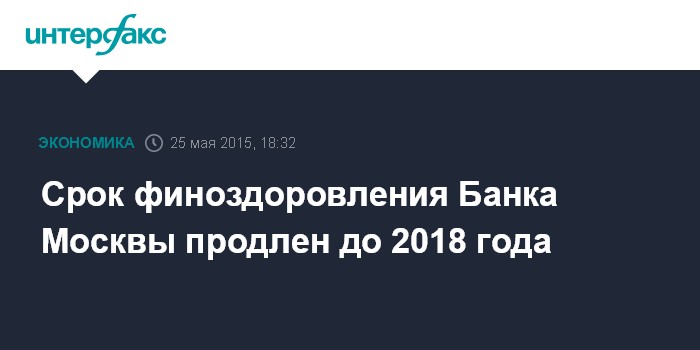 Срок финоздоровления Банка Москвы продлен до 2018 года