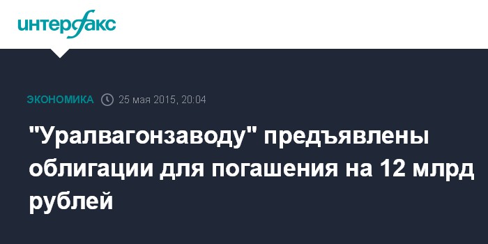 "Уралвагонзаводу" предъявлены облигации для погашения на 12 млрд рублей