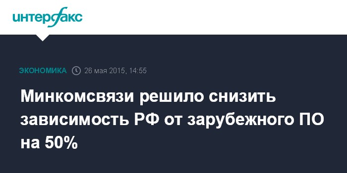 Москва. 26 мая. INTERFAX.RU - Минкомсвязи планирует в течение пяти-семи лет снизить зависимость РФ от зарубежных разработчиков программного обеспечения на 30-50%, заявил замминистра связи и массовых коммуникаций Алексей Соколов