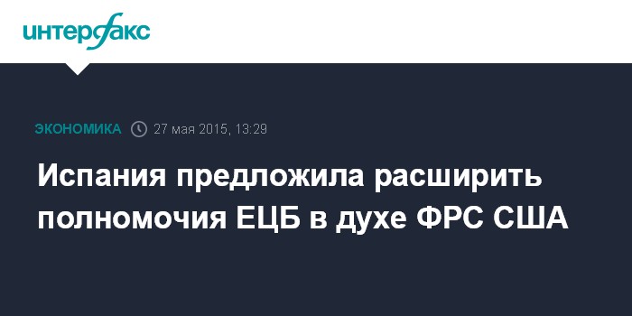 Москва. 27 мая. INTERFAX.RU – Правительство Испании предлагает расширить полномочия Европейского центрального банка в духе Федеральной резервной системы США, пишет испанская газета El Pais со ссылкой на попавший в ее распоряжение правительственный документ.