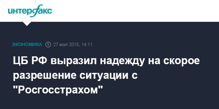 Москва. 27 мая. INTERFAX.RU – ЦБ РФ заинтересован в разрешении ситуации, сложившейся после ограничения лицензии "Росгосстраха" на ОСАГО.
