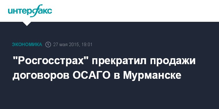 Москва. 27 мая. INTERFAX.RU - Офис ООО "Росгосстрах", специализирующийся на оформлении полисов ОСАГО, в Мурманске в среду приостановил работу, сообщил "Интерфаксу" сотрудник отдела филиала страховой компании.