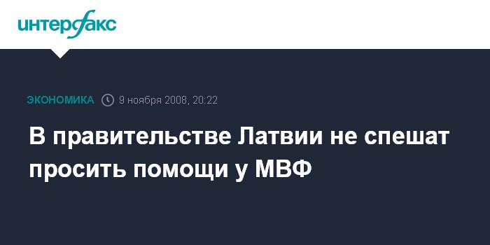 Рига. 9 ноября. ИНТЕРФАКС/BNS - Латвии сейчас нет необходимости обращаться за помощью в Международный валютный фонд (МВФ), однако в случае необходимости такой шаг будет предпринят, заявляют в правительстве страны.