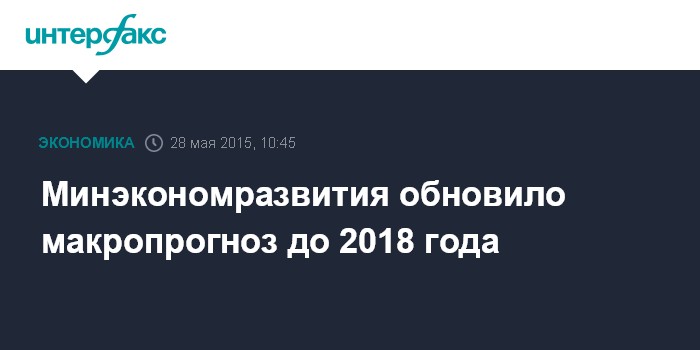 Согласно прогнозу министерства, ВВП в 2015 году снизится на 2,8%, в 2016 году вырастет на 2,3%, в 2017 году - на 2,3% (раньше ожидалось на 2,5%), в 2018 году - на 2,4%.