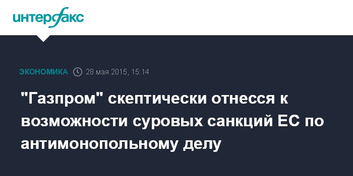 Москва. 28 мая. INTERFAX.RU – "Газпром" не ожидает ощутимых финансовых санкций со стороны ЕС по антимонопольному делу, сообщил журналистам источник в "Газпроме".