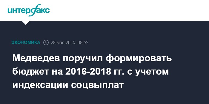 Медведев поручил формировать бюджет на 2016-2018 гг. с учетом индексации соцвыплат