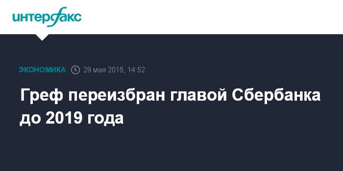 Полномочия Грефа были продлены с ноября 2015 года до ноября 2019 года. В апреле топ-менеджер уже сообщил, что вопрос об избрании президента - председателя правления Сбербанка будут решать акционеры.