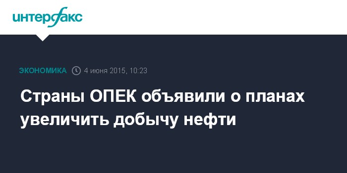 Москва. 4 июня. INTERFAX.RU – Отдельные члены Организации стран-экспортеров нефти публично заявляют о своих планах увеличить поставки топлива в преддверии заседания в Вене, на котором будет обсуждаться вопрос изменения квот на добычу, сообщает агентство Bloomberg.