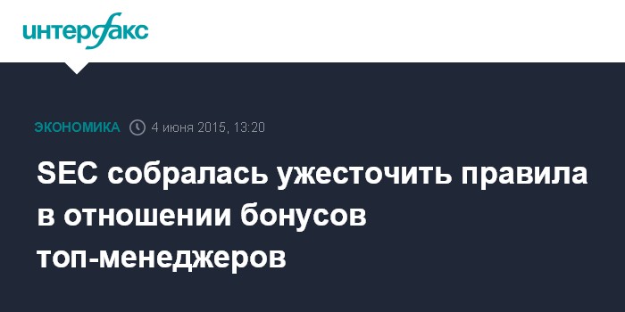 Москва. 4 июня. INTERFAX.RU – Комиссия по ценным бумагам и биржам США (SEC) может обязать компании, пересматривающие свои финансовые показатели в сторону понижения, требовать возврата бонусов от своих топ-менеджеров, сообщает The Wall Street Journal со ссылкой на информированный источник.