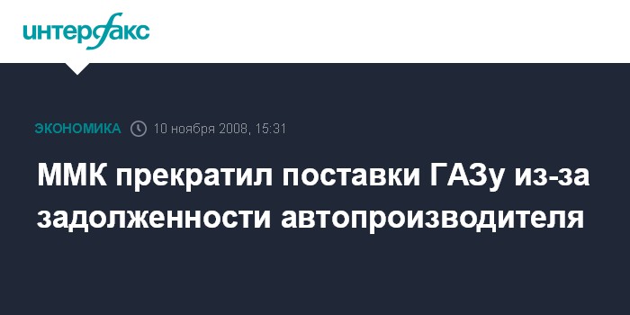 Москва. 10 ноября. INTERFAX.RU - ОАО "Магнитогорский металлургический комбинат" (ММК) прекратило поставки проката группе "ГАЗ" в связи с резко возросшей задолженностью автопроизводителя перед металлургической компанией, сообщил журналистам источник на ММК.