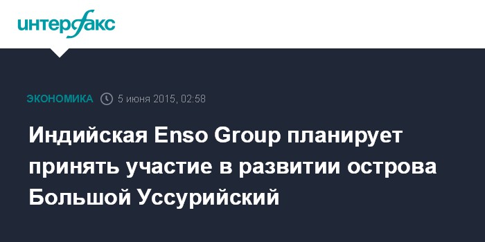 Москва. 5 июня. INTERFAX.RU - Индийский промышленный конгломерат Enso Group проявляет интерес к участию в ряде инвестпроектов на Дальнем Востоке, в том числе в проекте по развитию российской части острова Большой Уссурийский (Хабаровский край).