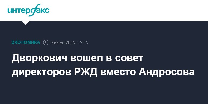 Москва. 5 июня. INTERFAX.RU - Государство ввело вице-премьера РФ Аркадия Дворковича в совет директоров ОАО "Российские железные дороги".