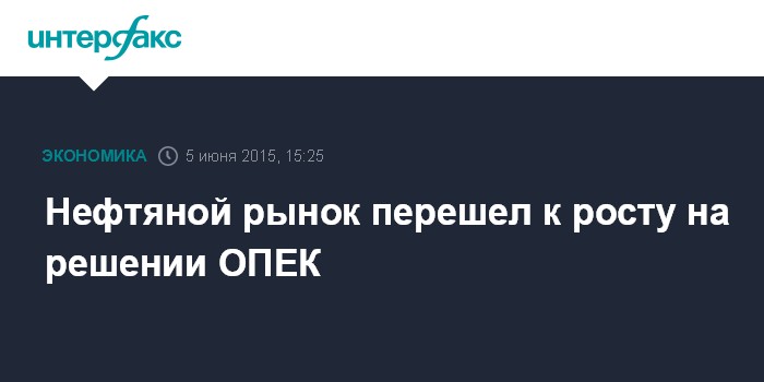 Москва. 5 июня. INTERFAX.RU – Цены на нефть перешли от падения к росту после решения Организации стран-экспортеров нефти сохранить квоты на добычу на текущем уровне в 30 млн баррелей в сутки, сообщает MarketWatch.