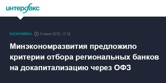 Минэкономразвития предложило критерии отбора региональных банков на докапитализацию через ОФЗ