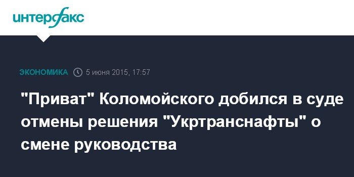 Москва. 5 июня. INTERFAX.RU – Группа "Приват" Игоря Коломойского и Геннадия Боголюбова добилась в суде отмены решения наблюдательного совета "Укртранснафты" об отстранении Александра Лазорко от руководства.