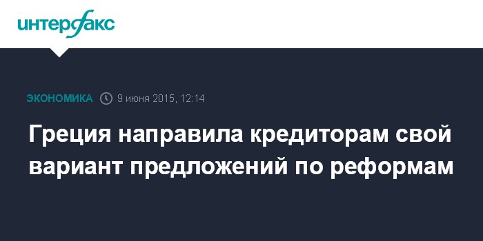 Москва. 9 июня. INTERFAX.RU – Греция во вторник направила кредиторам свой вариант предложений по реформам, рассчитывая, что это позволит достичь соглашения с ними, сообщает агентство Bloomberg со ссылкой на источники в международных официальных кругах.