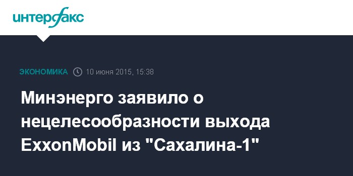 Москва. 10 июня. INTERFAX.RU – Минэнерго РФ считает нецелесообразным выход иностранных партнеров из проекта "Сахалин-1", - сообщил глава ведомства Александр Новак.