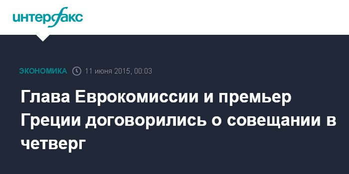 Москва. 11 июня. INTERFAX.RU - Председатель Еврокомиссии Жан-Клод Юнкер встретился в среду в Брюсселе с премьер-министром Греции Алексисом Ципрасом "на полях" саммита ЕС и стран Карибского бассейна и Латинской Америки, сообщил сайт бельгийской газеты Le Soir.