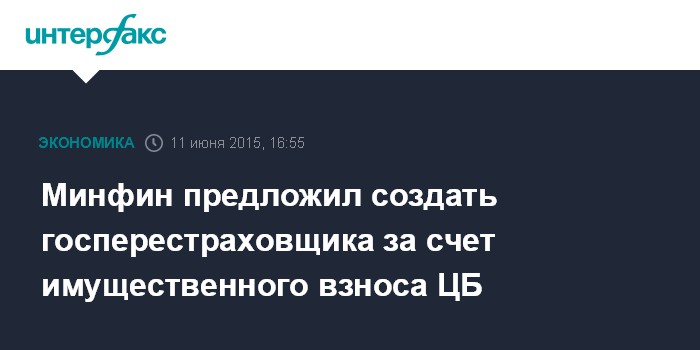 Минфин предложил создать госперестраховщика за счет имущественного взноса ЦБ