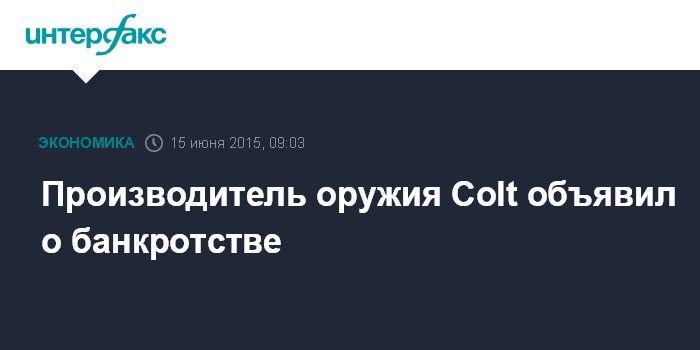 Москва. 15 июня. INTERFAX.RU - Американский производитель оружия Colt Defense LLC в воскресенье вечером обратился в суд Уилмингтона, штат Делавэр, с заявлением о защите от кредиторов согласно главе 11 Кодекса США о банкротстве.