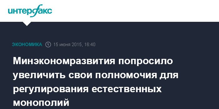 Москва. 15 июня. INTERFAX.RU – Минэкономразвития выступает за увеличение своих полномочий в сфере регулирования естественных монополий, заявил журналистам глава ведомства Алексей Улюкаев.