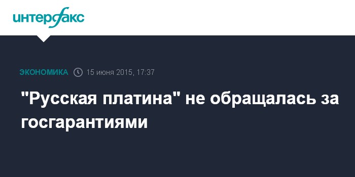 Москва. 15 июня. INTERFAX.RU – "Русская платина" не обращалась к правительству за предоставлением госгарантий, дополнительных льгот, финансовых средств и иной помощи, заявила компания в понедельник.