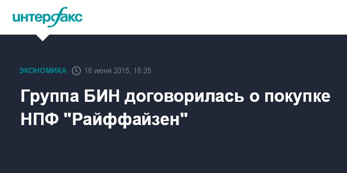 Группа БИН договорилась о покупке НПФ "Райффайзен"