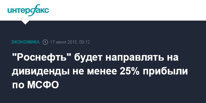 Несмотря на то, что предыдущая версия дивидендной политики предусматривала направление на дивиденды не менее 10% прибыли по РСБУ, "Роснефть" уже направляет на дивиденды 25% от чистой прибыли по МСФО.