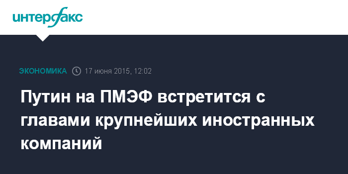 Путин на ПМЭФ встретится с главами крупнейших иностранных компаний