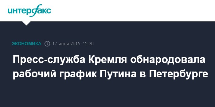 Москва. 17 июня. INTERFAX.RU – Президент России Владимир Путин 18-19 июня совершит рабочую поездку в Санкт-Петербург, где примет участие в XIX Петербургском международном экономическом форуме. Он проведет ряд деловых встреч, а также пообщается с представителями российского и иностранного бизнеса, сообщает пресс-служба Кремля.