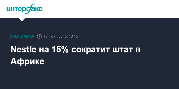 Москва. 17 июня. INTERFAX.RU – Швейцарский производитель продуктов питания и напитков Nestle, крупнейший в мире, планирует сократить около 15% сотрудников в Африке.