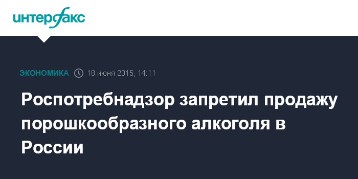 Москва. 18 июня. INTERFAX.RU - Руководство Роспотребнадзора поручило территориальным подразделениям не допустить появления на потребительском рынке порошкообразного алкоголя.