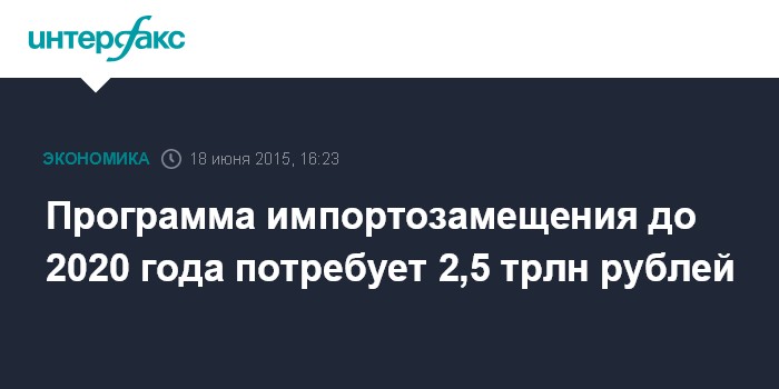 Программа импортозамещения до 2020 года потребует 2,5 трлн рублей