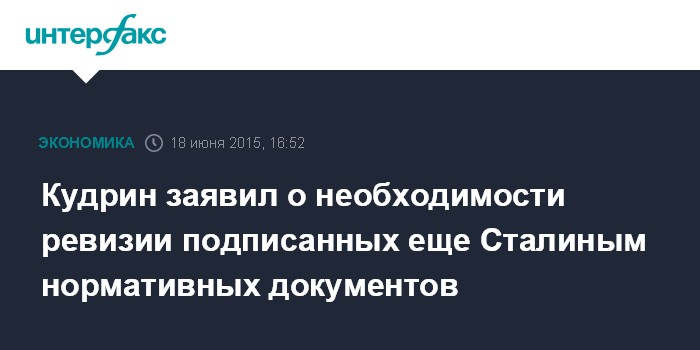 Москва. 18 июня. INTERFAX.RU – Госорганы РФ в ряде случаев работают по документам, подписанным Сталиным, сообщил экс-министр финансов Алексей Кудрин.