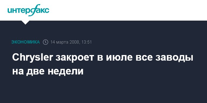 Нью-Йорк. 14 марта. INTERFAX.RU - Chrysler объявил в четверг, что в этом году в июле прекратит работу своих заводов на две недели по всему миру за исключением самых важных операций, тогда как обычно он останавливает лишь сборочные работы, пишет The International Herald Tribune.