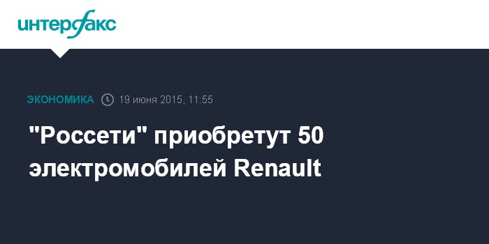 Москва. 19 июня. INTERFAX.RU – "Россети" и Renault подписали соглашение о стратегическом партнерстве, сообщила российская компания. Речь идет о формировании зарядной инфраструктуры для электротранспорта в России. В рамках соглашения "Россети" также планируют купить 50 электромобилей Renault.