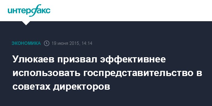 Москва. 19 июня. INTERFAX.RU – Министр экономического развития РФ Алексей Улюкаев считает, что государству необходимо эффективнее использовать свое представительство в советах директоров госкомпаний.