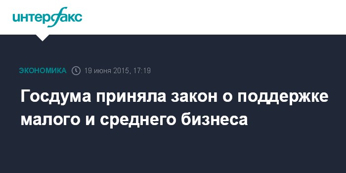 Москва. 19 июня. INTERFAX.RU – Госдума на заседании в пятницу приняла в третьем чтении закон о поддержке субъектов малого и среднего предпринимательства (МСП). Документ был подготовлен Минэкономразвития в рамках антикризисного плана правительства.