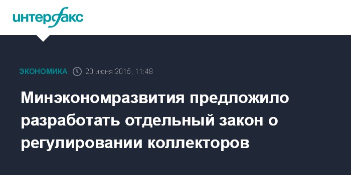Москва. 20 июня. INTERFAX.RU - Министерство экономического развития России предлагает разработать отдельный закон, регулирующий отношения между заемщиками и профессиональными взыскателями (коллекторами).