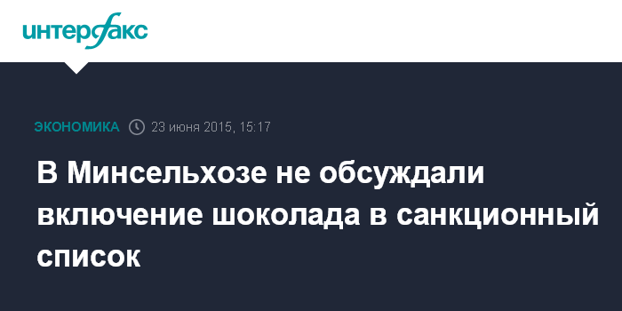 Москва. 23 июня. INTERFAX.RU - Минсельхоз не предлагает включить шоколад в санкционный список продовольствия.