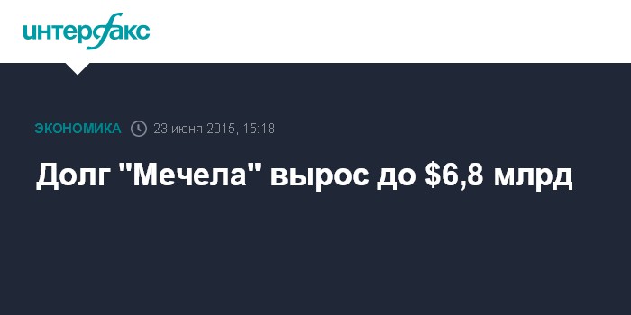 Москва. 23 июня. INTERFAX.RU - Долг ОАО "Мечел" по состоянию на 15 июня 2015 года достиг уровня $6,772 млрд, говорится в презентации компании.