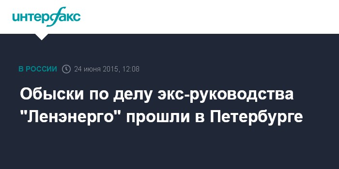 Москва. 24 июня. INTERFAX.RU - Правоохранительные органы провели следственные действия в Петербурге и Ленобласти в рамках расследования уголовного дела по признакам злоупотребления полномочиями бывшими топ-менеджерами "Ленэнерго", сообщил "Интерфаксу" источник в силовых структурах города.