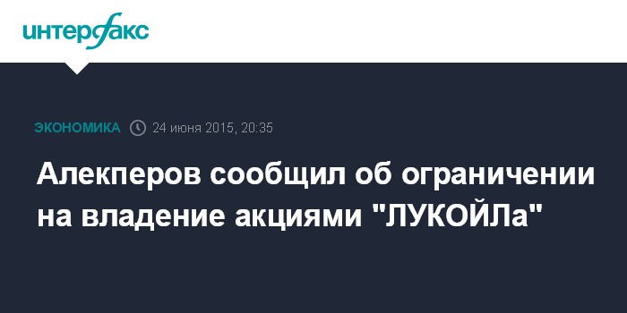 Москва. 24 июня. INTERFAX.RU - Глава НК "ЛУКОЙЛ" Вагит Алекперов ограничен 30%-ной долей возможного владения акций нефтекомпании.