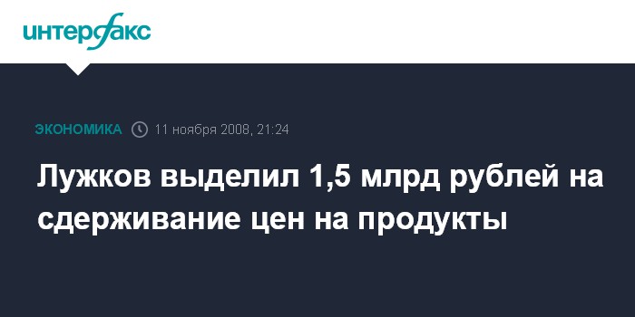 "Я выделил 1,5 млрд рублей на то, чтобы департамент продовольственных ресурсов города увеличил объем городского государственного запаса - это хлеб, овощи, картофель. Если коммерческие структуры поднимут цены на продукты, мы вбрасываем продовольствие на рынок и тем самым цены снижаются. Если цены держатся нормально, продовольствие идет в школы, в социальную сферу", - пояснил Лужков.