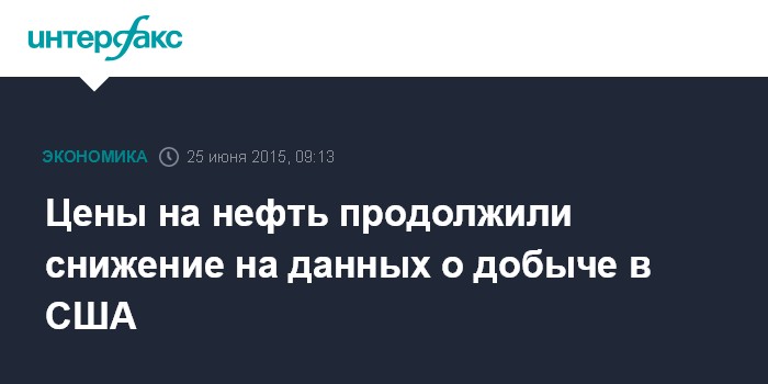 Москва. 25 июня. INTERFAX.RU - Цены на нефть продолжают снижаться в четверг из-за опубликованных накануне данных о том, что объемы добычи углеводородов в США близки к рекордным, а также о росте товарных запасов бензина и дистиллятов, сообщает агентство Bloomberg.