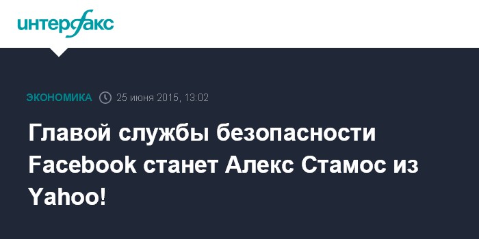 Москва. 25 июня. INTERFAX.RU – Американская компания Facebook, владелец крупнейшей в мире социальной сети, назначил главным директором по информационной безопасности Алекса Стамоса.