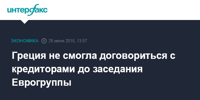 Москва. 25 июня. INTERFAX.RU – Греческой делегации не удалось прийти к соглашению с международными кредиторам, сообщает агентство Bloomberg со ссылкой на информированный источник.