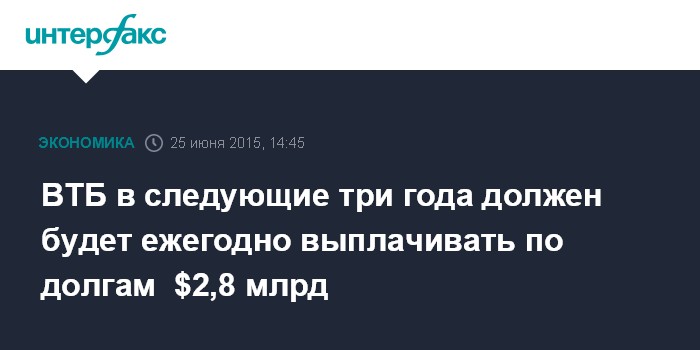 ВТБ в следующие три года должен будет ежегодно выплачивать по долгам $2,8 млрд