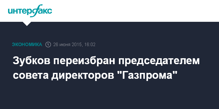 Москва. 26 июня. INTERFAX.RU – Совет директоров "Газпрома" принял решение избрать своим председателем Виктора Зубкова, сообщил журналистам официальный представитель концерна Сергей Куприянов.